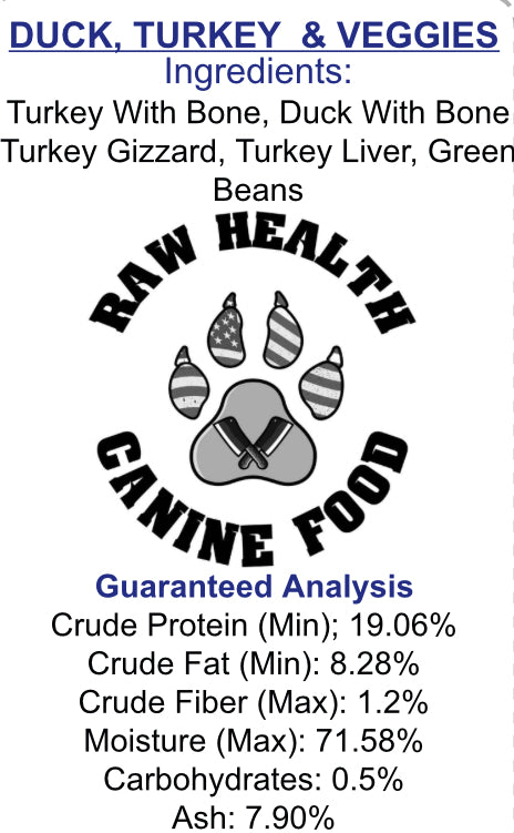 Duck with bone, Turkey with bone, Turkey Gizzards, Turkey Liver and Green Beans